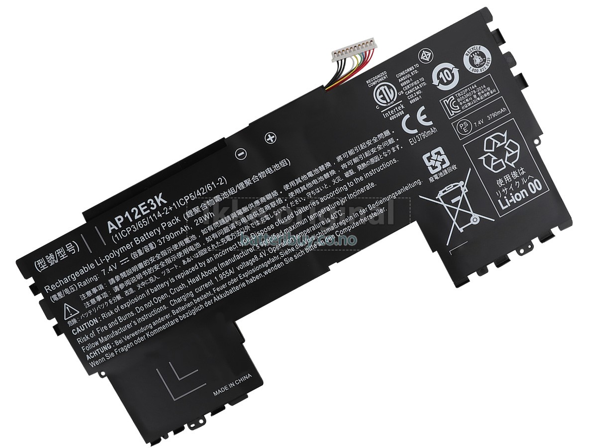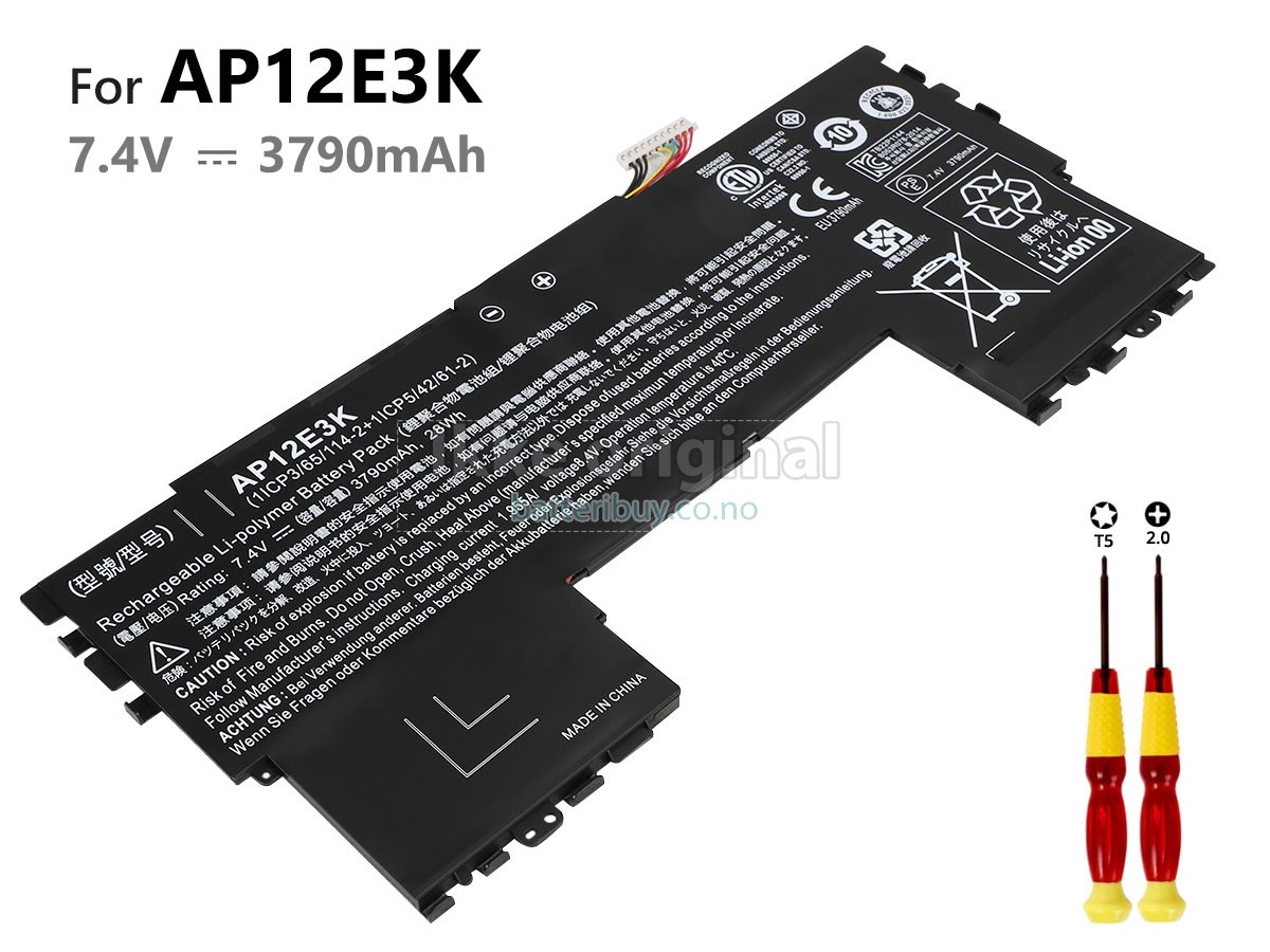 Erstatnings batteri til Acer AP12E3K fra BatteriBuy.co.no er ditt beste valg. Vi tilbyr høykvalitets batterier til Acer AP12E3K laptoper til en lavere pris. Våre Acer AP12E3K batterier kan lades over minst 600 sykluser. Det er laget med et ABS plastbelegg og den originale IC beskyttelseschipen, som gir deg en ny opplevelse av utmerket varighet.