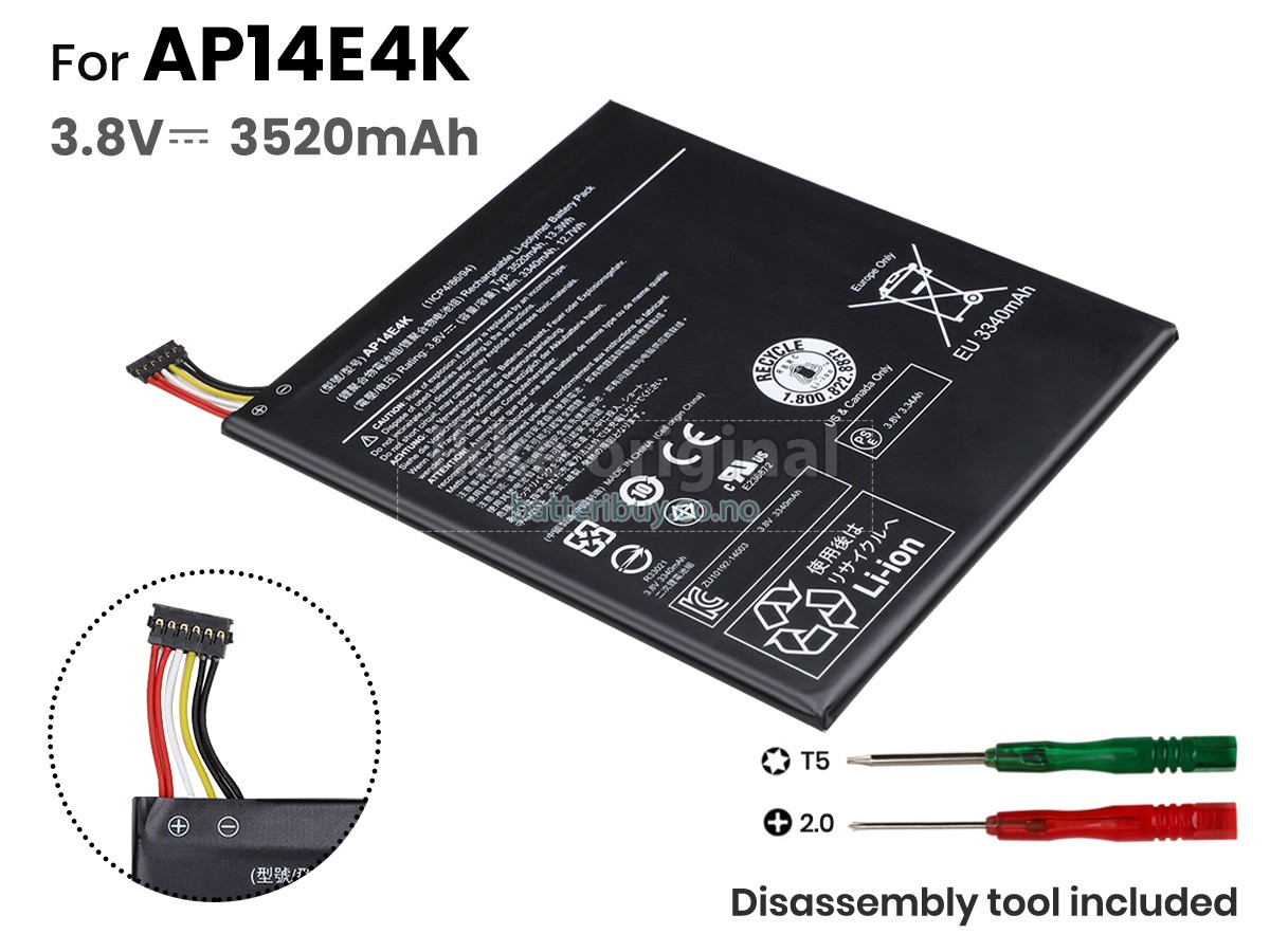 A: I produktkompatibilitetsoversikten vår, kan du sjekke om Acer Iconia One 7 B1-750(NT.L65EE.003) batteri passer til din laptop. Ved å klikke på "større bilder", Sikre på at Acer Iconia One 7 B1-750(NT.L65EE.003) batteri tilpasser til Acer datamaskinen. I tillegg, burde du sjekke om spenningen (verdien) er den samme som den gamle batteri din. For mer detaljer, kan du klikke på Hvordan finner jeg riktig batteri til laptopen min?