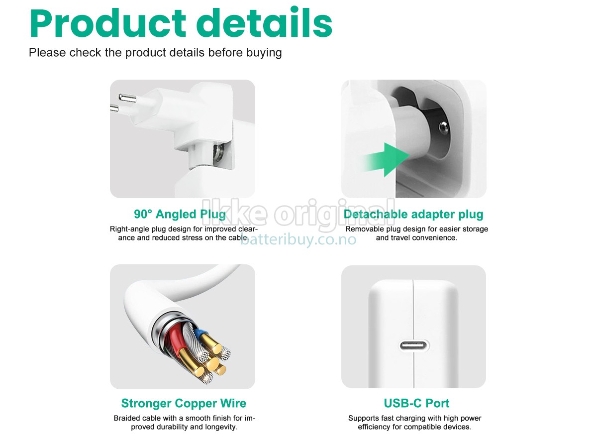 1 Rask lading: Vår Apple MYDA2LL/A adapter benytter avansert ladeteknologi for å levere effektiv strøm til enheten din, slik at du kan holde produktiviteten oppe uten lange ventetider.