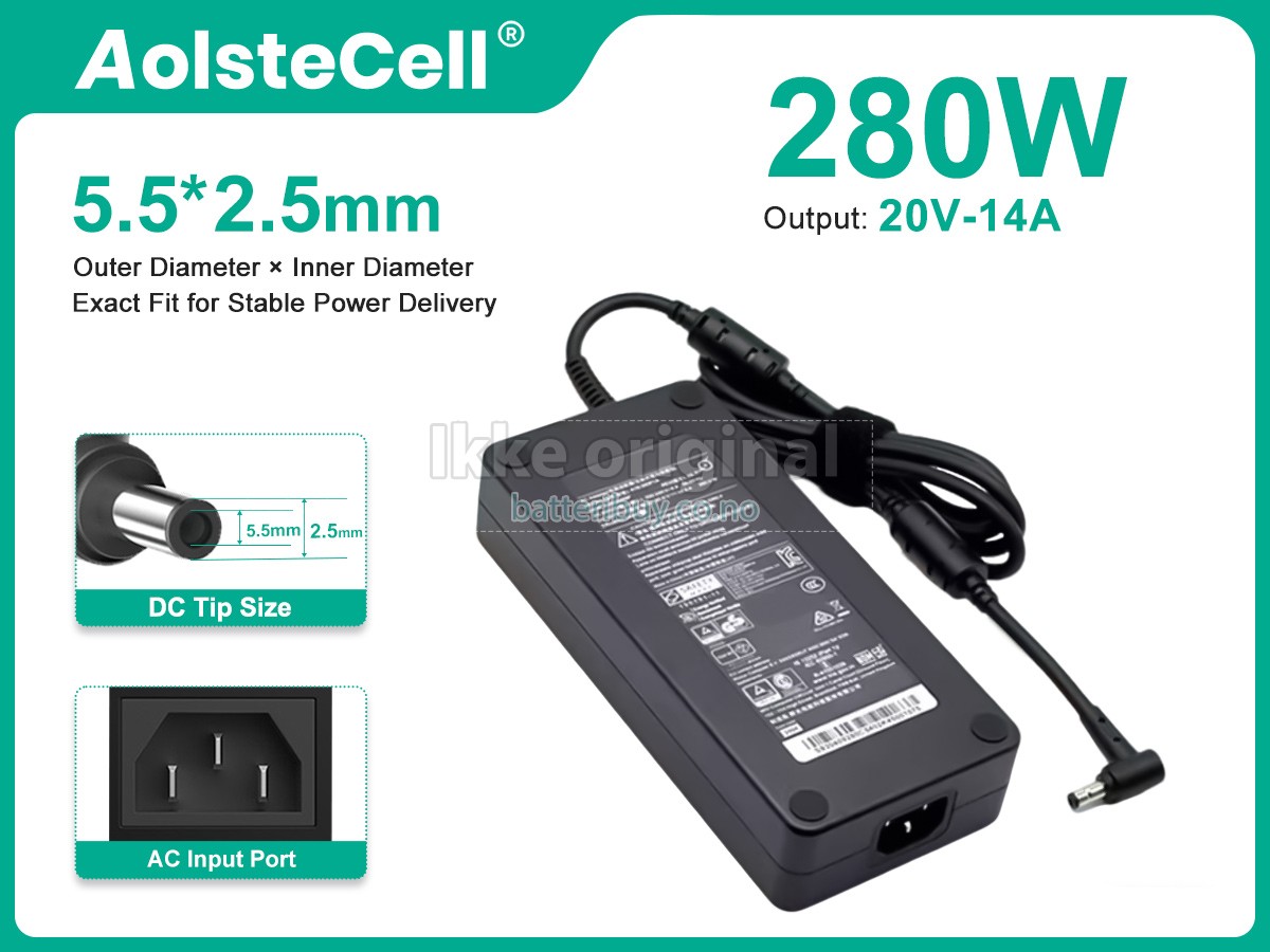 Adapter til Chicony AORUS 17H BXF i9 i7 RTX4080 (280W, 5.5*2.5mm)