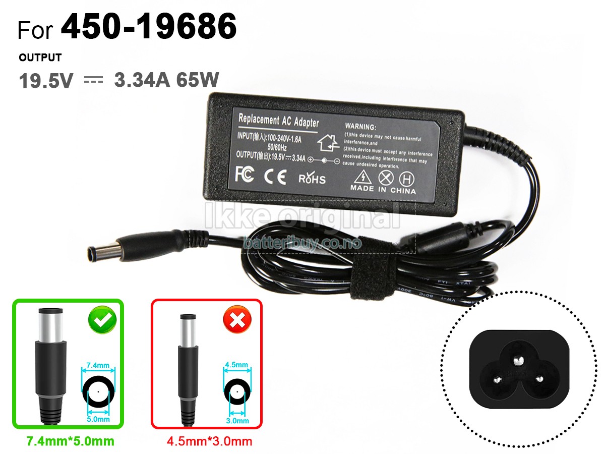 Adapter til Dell 0NX061 (65W, Black Tip, 7.4*5.0mm)