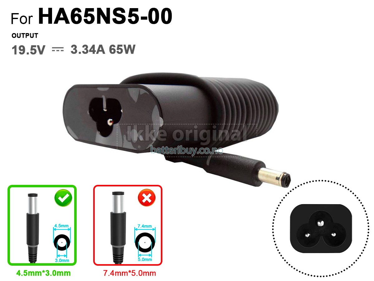 Adapter til Dell HA65NM130 (65W, Black Tip, 4.5*3.0mm)