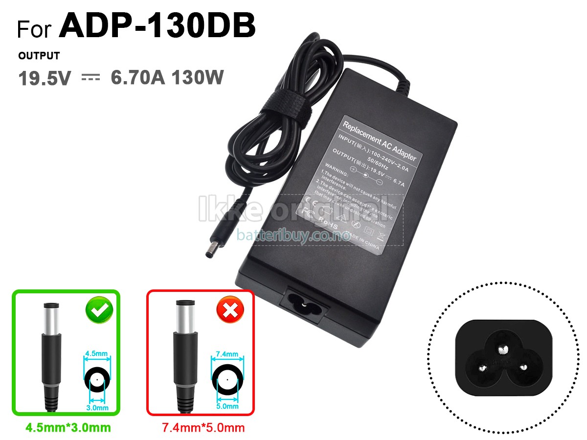 Adapter til Dell la130pm190 (130W, Black Tip, 4.5*3.0mm)