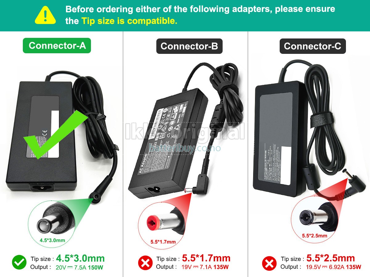 Adapter til MSI A18-135P1A (150W, 4.5*3.0mm)