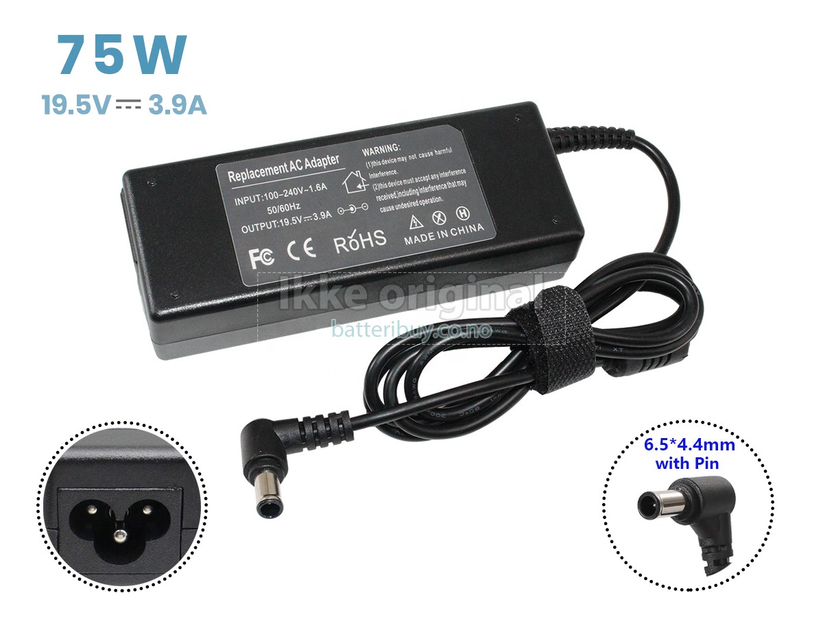 Adapter til SONY VGP-AC19V19 (75W, Black Tip, 6.5*4.4mm)