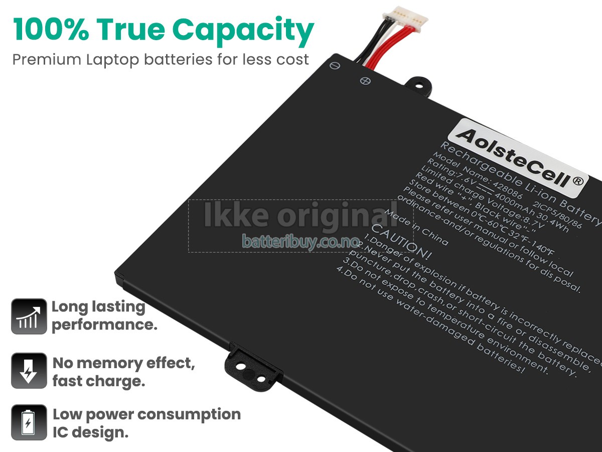 Erstatnings batteri til AolsteCell 428086 fra BatteriBuy.co.no er ditt beste valg. Vi tilbyr høykvalitets batterier til AolsteCell 428086 laptoper til en lavere pris. Våre AolsteCell 428086 batterier kan lades over minst 600 sykluser. Det er laget med et ABS plastbelegg og den originale IC beskyttelseschipen, som gir deg en ny opplevelse av utmerket varighet.