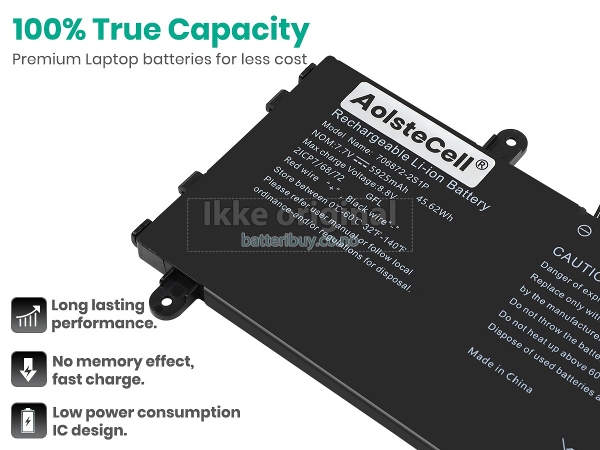 Med førsteklasses kvalitetsforsikring, batteri til AolsteCell 706872-2S1P kan beskytte av spenning, kortslutning, ladetid og ESD osv. Hvert AolsteCell 706872-2S1P laptop batteri has bestått en mengde sikkerhetssertifiseringer, som CE, UL, ROHS, ISO9001/9002. Det vil bli testet grundig av teknikerne våre før det sendes til dine hender. Vi vil prøve vårt beste for å velge et høykvalitets batteri til AolsteCell 706872-2S1P laptop.