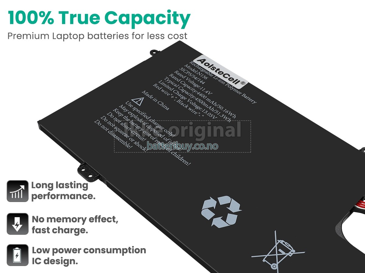 Erstatnings batteri til AolsteCell N156 fra BatteriBuy.co.no er ditt beste valg. Vi tilbyr høykvalitets batterier til AolsteCell N156 laptoper til en lavere pris. Våre AolsteCell N156 batterier kan lades over minst 600 sykluser. Det er laget med et ABS plastbelegg og den originale IC beskyttelseschipen, som gir deg en ny opplevelse av utmerket varighet.