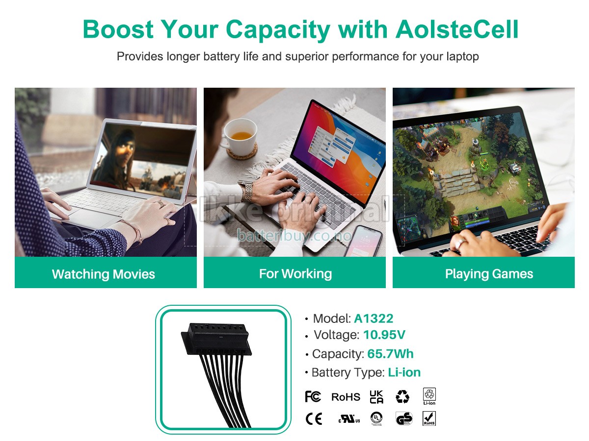 This battery replacement for Apple A1278(EMC 2326*), A1278(EMC 2351*), A1278(EMC 2419*), A1278(EMC 2554*), A1278(EMC 2555*).