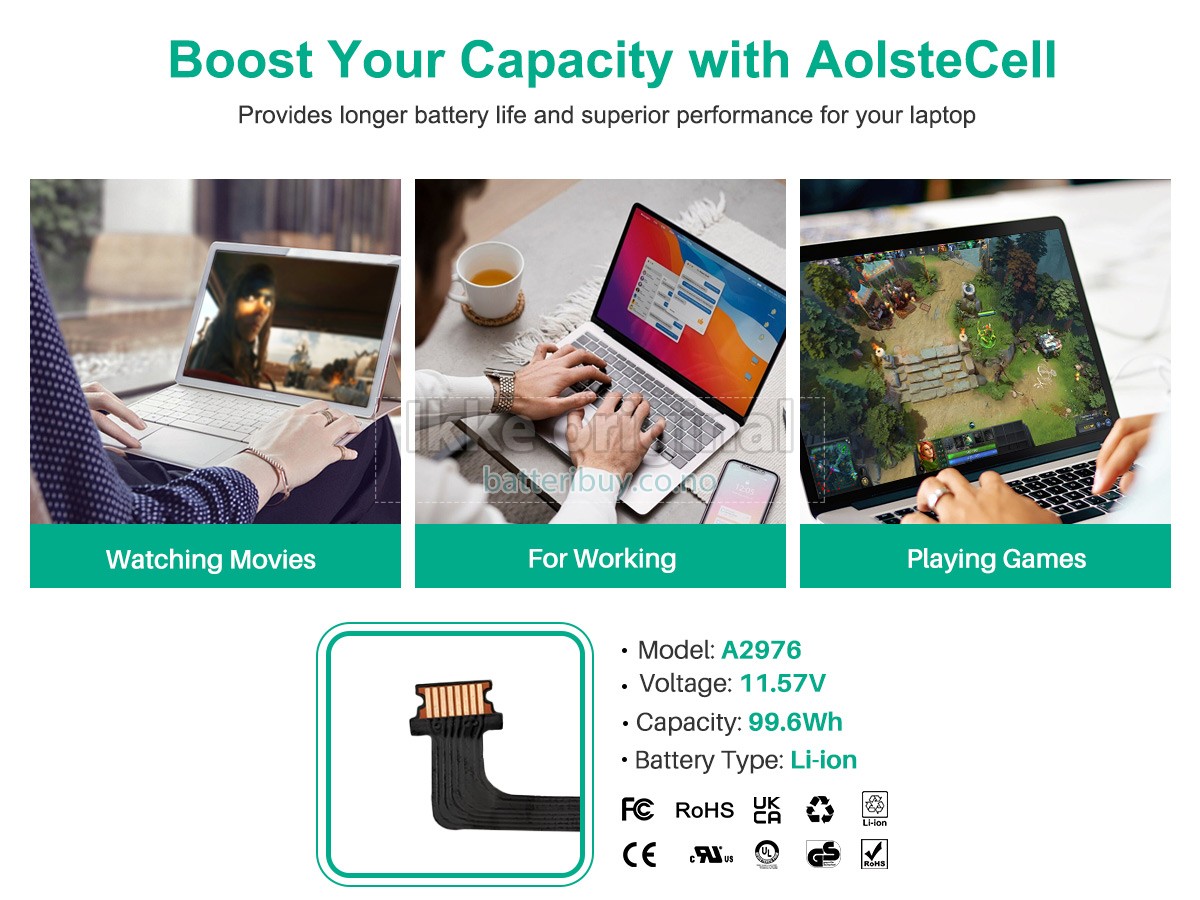 Erstatnings batteri til Apple A2991 EMC 8408 fra BatteriBuy.co.no er ditt beste valg. Vi tilbyr høykvalitets batterier til Apple A2991 EMC 8408 laptoper til en lavere pris. Våre Apple A2991 EMC 8408 batterier kan lades over minst 600 sykluser. Det er laget med et ABS plastbelegg og den originale IC beskyttelseschipen, som gir deg en ny opplevelse av utmerket varighet.