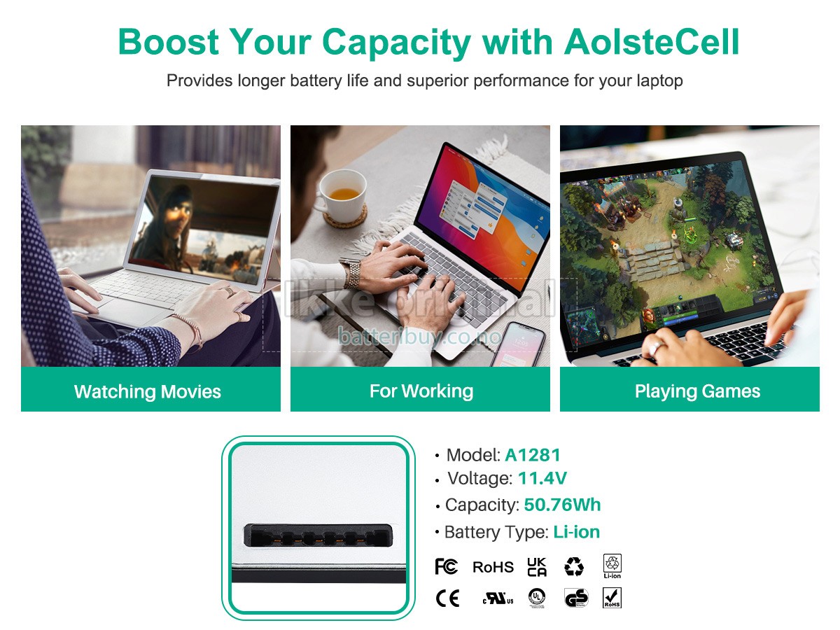 Erstatnings batteri til Apple MB471LL/A fra BatteriBuy.co.no er ditt beste valg. Vi tilbyr høykvalitets batterier til Apple MB471LL/A laptoper til en lavere pris. Våre Apple MB471LL/A batterier kan lades over minst 600 sykluser. Det er laget med et ABS plastbelegg og den originale IC beskyttelseschipen, som gir deg en ny opplevelse av utmerket varighet.