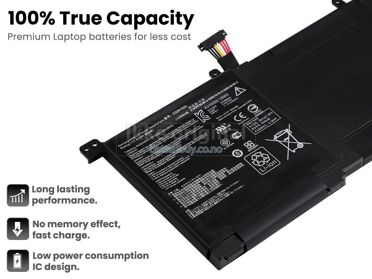 Erstatnings batteri til Asus C32N1523 fra BatteriBuy.co.no er ditt beste valg. Vi tilbyr høykvalitets batterier til Asus C32N1523 laptoper til en lavere pris. Våre Asus C32N1523 batterier kan lades over minst 600 sykluser. Det er laget med et ABS plastbelegg og den originale IC beskyttelseschipen, som gir deg en ny opplevelse av utmerket varighet.