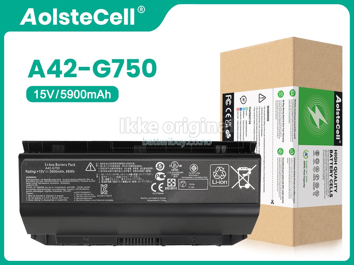Alle våre høykvalitets erstatnings batteri til Asus G750JS-T4064H laptopen kommer med ett års garanti. Garantien gjelder om kjøperen har installert batteri riktig i