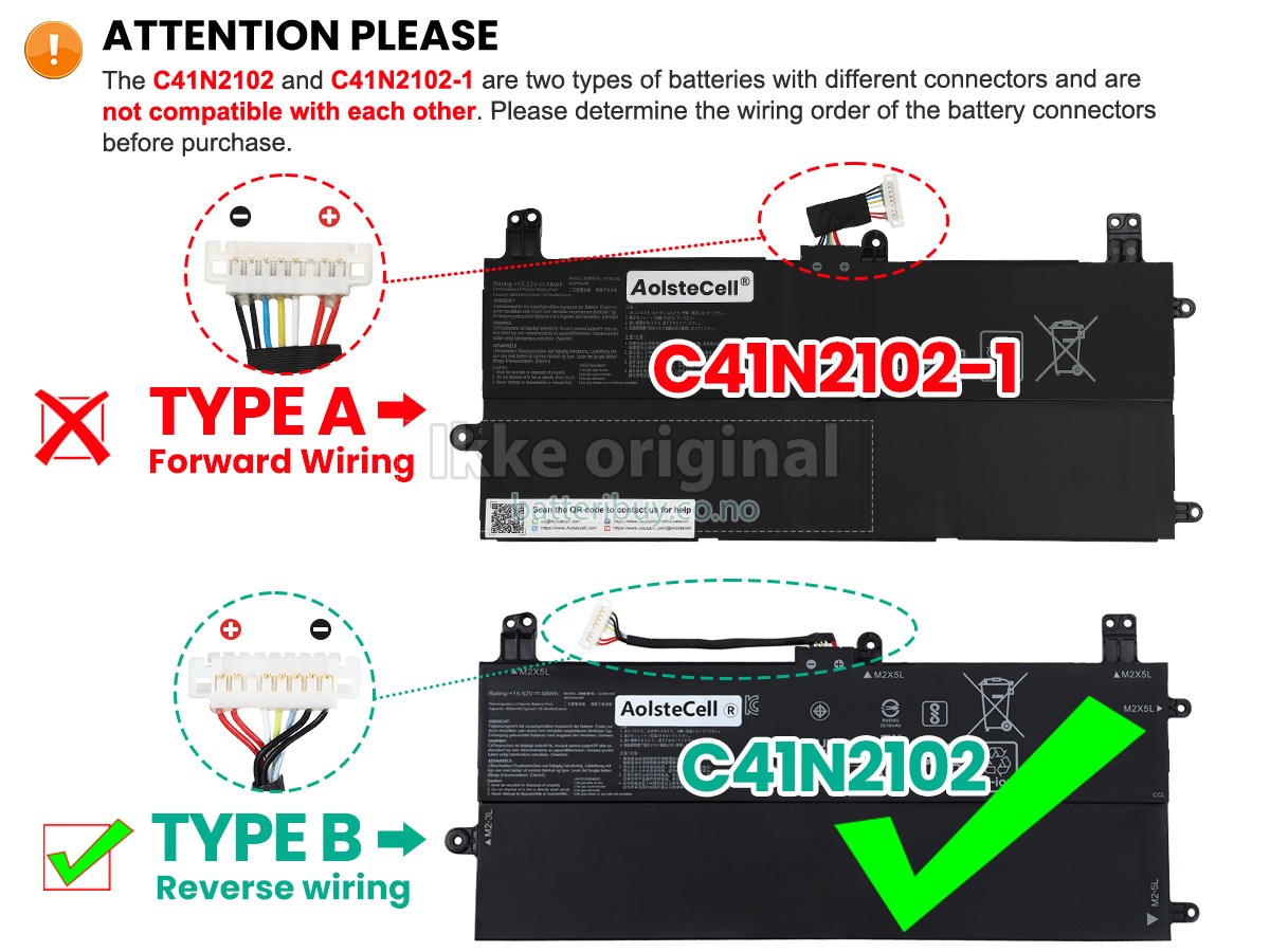 A: I produktkompatibilitetsoversikten vår, kan du sjekke om Asus Rog FLOW Z13 GZ301ZE-LD100 batteri passer til din laptop. Ved å klikke på "større bilder", Sikre på at Asus Rog FLOW Z13 GZ301ZE-LD100 batteri tilpasser til Asus datamaskinen. I tillegg, burde du sjekke om spenningen (verdien) er den samme som den gamle batteri din. For mer detaljer, kan du klikke på Hvordan finner jeg riktig batteri til laptopen min?