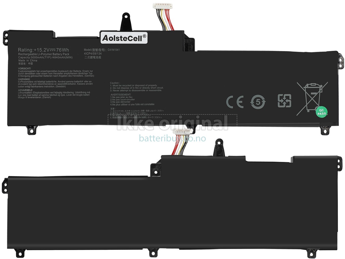Med førsteklasses kvalitetsforsikring, batteri til Asus Rog STRIX G702VMK kan beskytte av spenning, kortslutning, ladetid og ESD osv. Hvert Asus Rog STRIX G702VMK laptop batteri has bestått en mengde sikkerhetssertifiseringer, som CE, UL, ROHS, ISO9001/9002. Det vil bli testet grundig av teknikerne våre før det sendes til dine hender. Vi vil prøve vårt beste for å velge et høykvalitets batteri til Asus Rog STRIX G702VMK laptop.