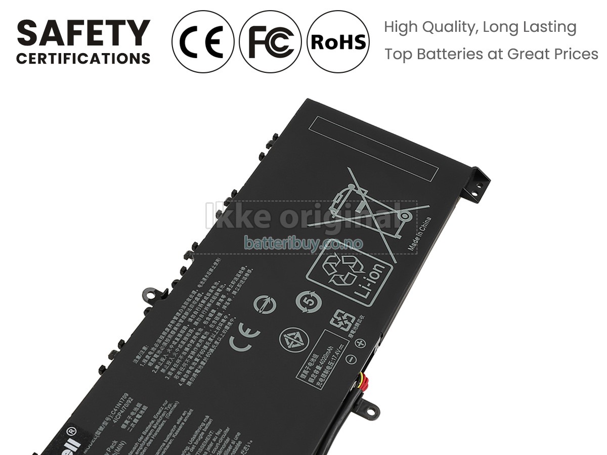 Med førsteklasses kvalitetsforsikring, batteri til Asus Rog STRIX GL503VS-EI037T kan beskytte av spenning, kortslutning, ladetid og ESD osv. Hvert Asus Rog STRIX GL503VS-EI037T laptop batteri has bestått en mengde sikkerhetssertifiseringer, som CE, UL, ROHS, ISO9001/9002. Det vil bli testet grundig av teknikerne våre før det sendes til dine hender. Vi vil prøve vårt beste for å velge et høykvalitets batteri til Asus Rog STRIX GL503VS-EI037T laptop.
