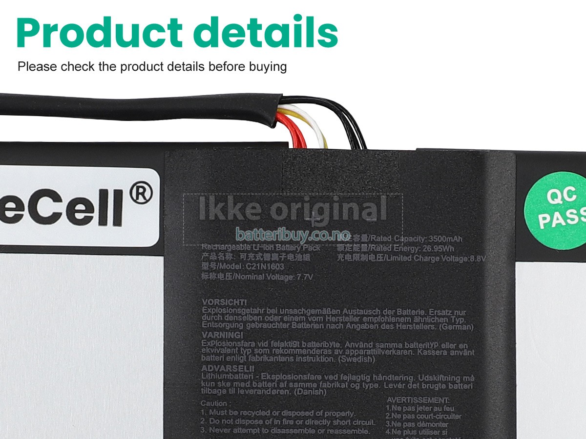 Alle våre høykvalitets erstatnings batteri til Asus Transformer 4 Pro T304UA laptopen kommer med ett års garanti. Garantien gjelder om kjøperen har installert batteri riktig i