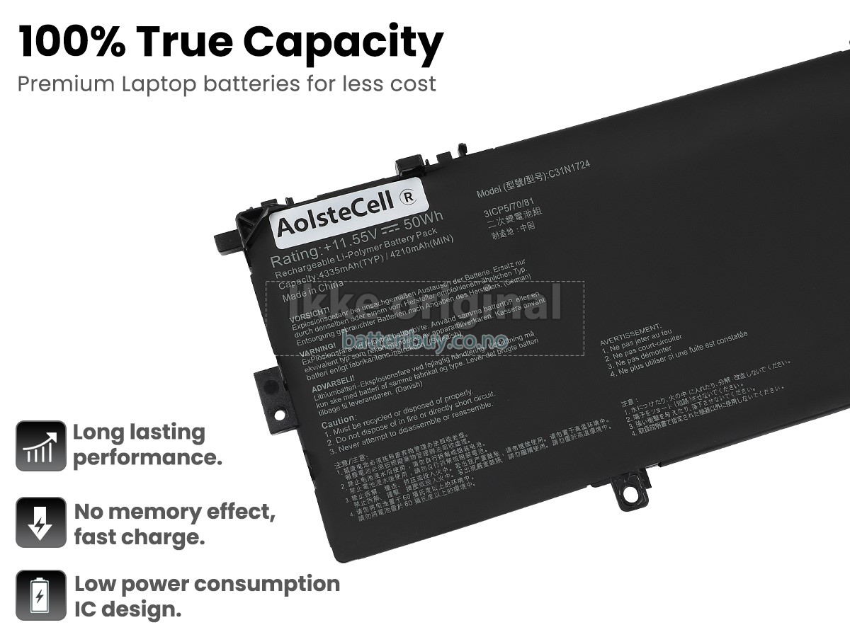 Erstatnings batteri til Asus ZenBook 13 UX331UAL-EG080T fra BatteriBuy.co.no er ditt beste valg. Vi tilbyr høykvalitets batterier til Asus ZenBook 13 UX331UAL-EG080T laptoper til en lavere pris. Våre Asus ZenBook 13 UX331UAL-EG080T batterier kan lades over minst 600 sykluser. Det er laget med et ABS plastbelegg og den originale IC beskyttelseschipen, som gir deg en ny opplevelse av utmerket varighet.
