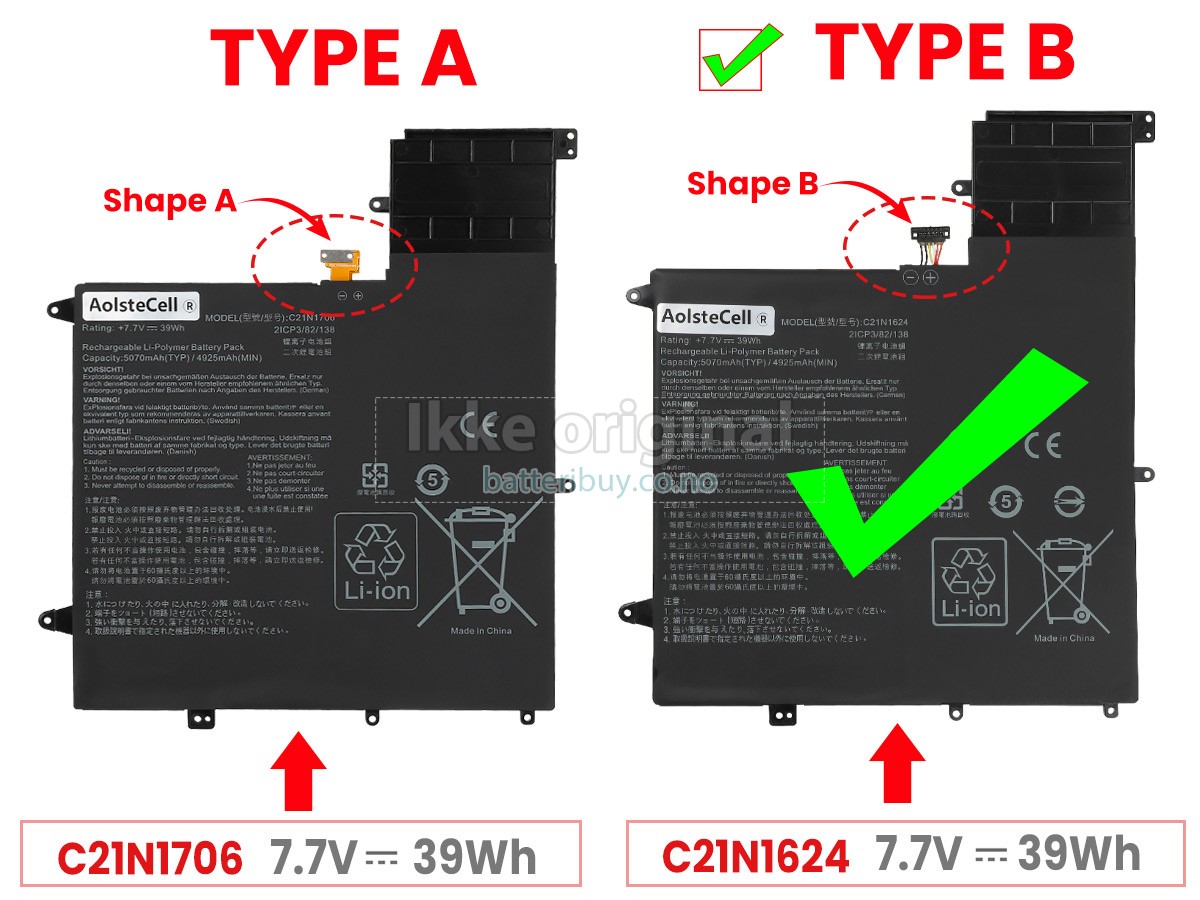 A: I produktkompatibilitetsoversikten vår, kan du sjekke om Asus ZenBook Flip S UX370UA-C4143R batteri passer til din laptop. Ved å klikke på "større bilder", Sikre på at Asus ZenBook Flip S UX370UA-C4143R batteri tilpasser til Asus datamaskinen. I tillegg, burde du sjekke om spenningen (verdien) er den samme som den gamle batteri din. For mer detaljer, kan du klikke på Hvordan finner jeg riktig batteri til laptopen min?
