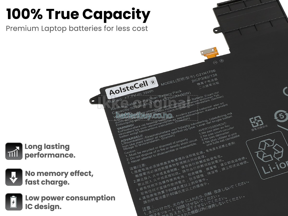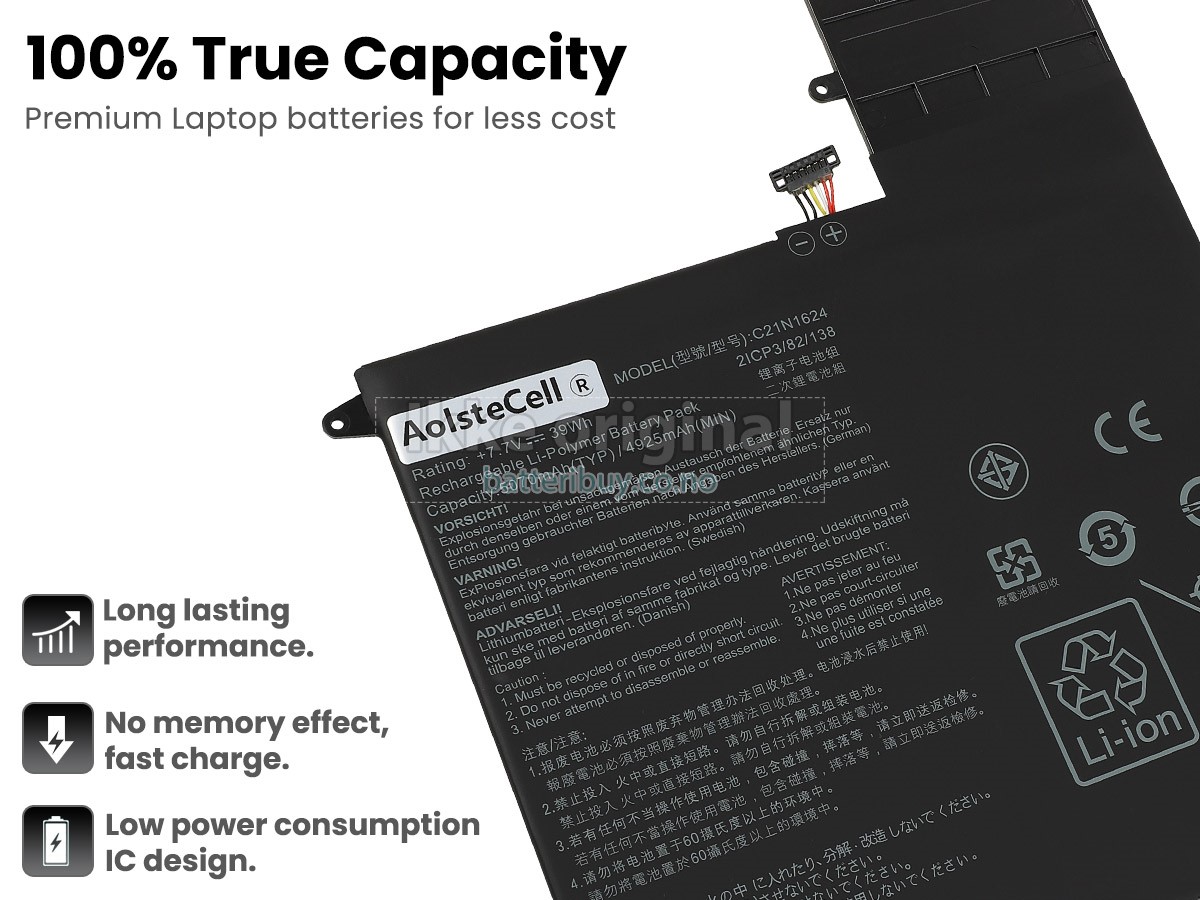 Erstatnings batteri til Asus ZenBook Flip S UX370UA-C4143R fra BatteriBuy.co.no er ditt beste valg. Vi tilbyr høykvalitets batterier til Asus ZenBook Flip S UX370UA-C4143R laptoper til en lavere pris. Våre Asus ZenBook Flip S UX370UA-C4143R batterier kan lades over minst 600 sykluser. Det er laget med et ABS plastbelegg og den originale IC beskyttelseschipen, som gir deg en ny opplevelse av utmerket varighet.