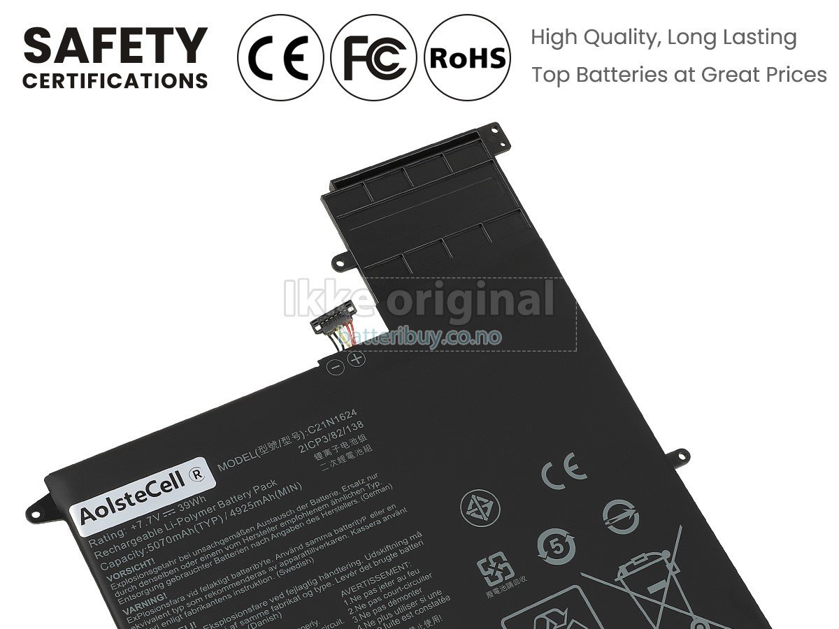 Med førsteklasses kvalitetsforsikring, batteri til Asus ZenBook Flip S UX370UA-C4143R kan beskytte av spenning, kortslutning, ladetid og ESD osv. Hvert Asus ZenBook Flip S UX370UA-C4143R laptop batteri has bestått en mengde sikkerhetssertifiseringer, som CE, UL, ROHS, ISO9001/9002. Det vil bli testet grundig av teknikerne våre før det sendes til dine hender. Vi vil prøve vårt beste for å velge et høykvalitets batteri til Asus ZenBook Flip S UX370UA-C4143R laptop.