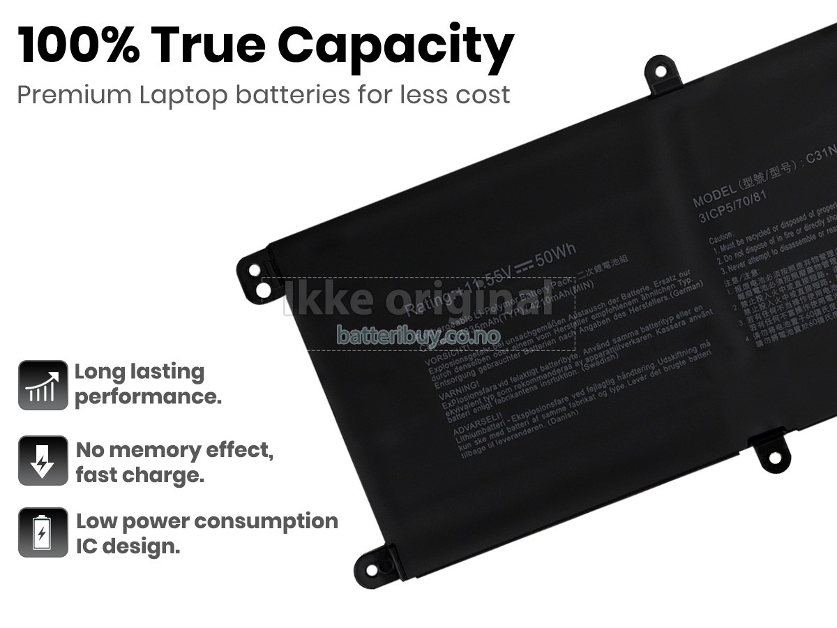 Erstatnings batteri til Asus ZenBook UX530UQ-FY019T fra BatteriBuy.co.no er ditt beste valg. Vi tilbyr høykvalitets batterier til Asus ZenBook UX530UQ-FY019T laptoper til en lavere pris. Våre Asus ZenBook UX530UQ-FY019T batterier kan lades over minst 600 sykluser. Det er laget med et ABS plastbelegg og den originale IC beskyttelseschipen, som gir deg en ny opplevelse av utmerket varighet.