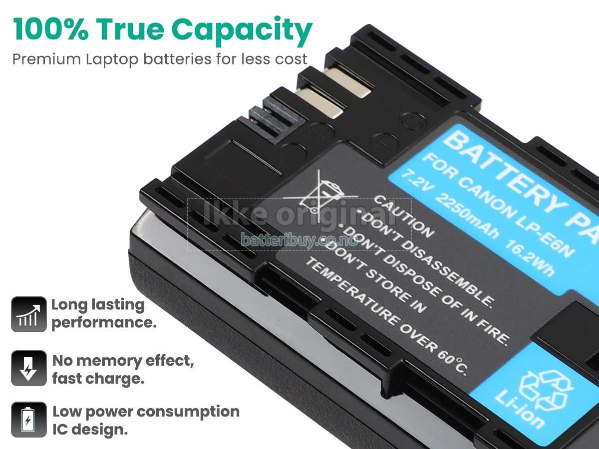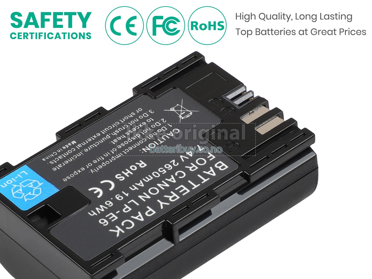 Erstatnings batteri til Canon EOS R5 fra BatteriBuy.co.no er ditt beste valg. Vi tilbyr høykvalitets batterier til Canon EOS R5 til en lavere pris. Våre Canon EOS R5 batterier kan lades over minst 600 sykluser. Det er laget med et ABS plastbelegg og den originale IC beskyttelseschipen, som gir deg en ny opplevelse av utmerket varighet.