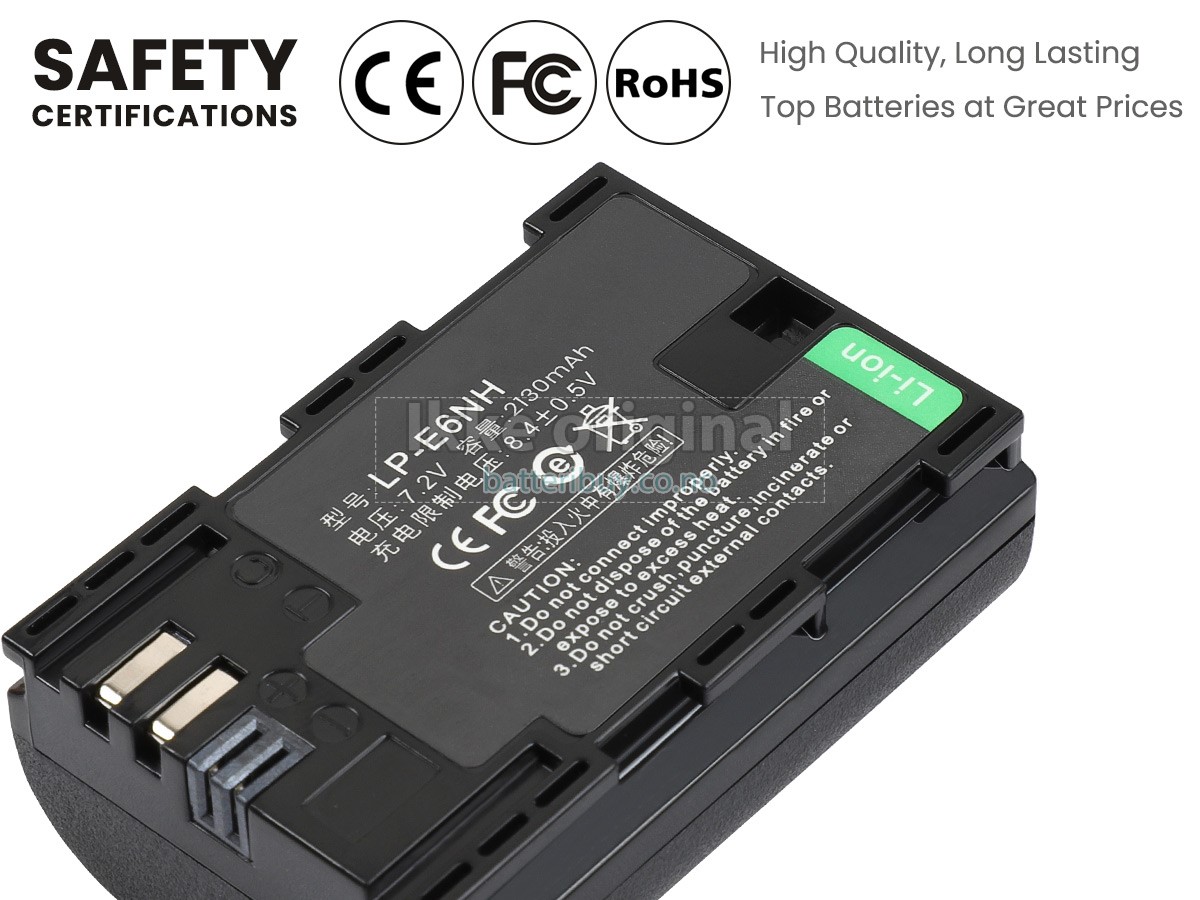 Med førsteklasses kvalitetsforsikring, batteri til Canon EOS R5 kan beskytte av spenning, kortslutning, ladetid og ESD osv. Hvert Canon EOS R5 batteri has bestått en mengde sikkerhetssertifiseringer, som CE, UL, ROHS, ISO9001/9002. Det vil bli testet grundig av teknikerne våre før det sendes til dine hender. Vi vil prøve vårt beste for å velge et høykvalitets batteri til Canon EOS R5.