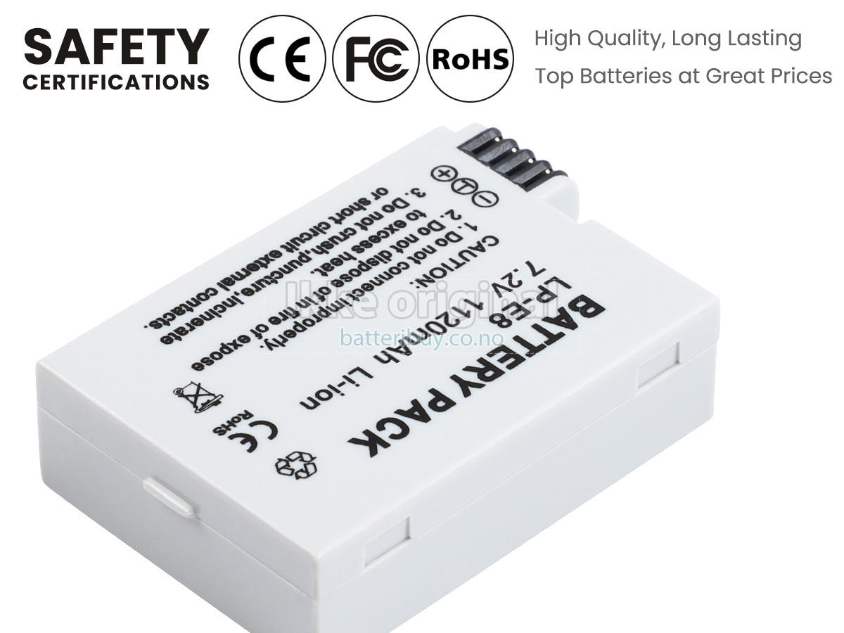 Erstatnings batteri til Canon EOS REBEL T2I fra BatteriBuy.co.no er ditt beste valg. Vi tilbyr høykvalitets batterier til Canon EOS REBEL T2I til en lavere pris. Våre Canon EOS REBEL T2I batterier kan lades over minst 600 sykluser. Det er laget med et ABS plastbelegg og den originale IC beskyttelseschipen, som gir deg en ny opplevelse av utmerket varighet.