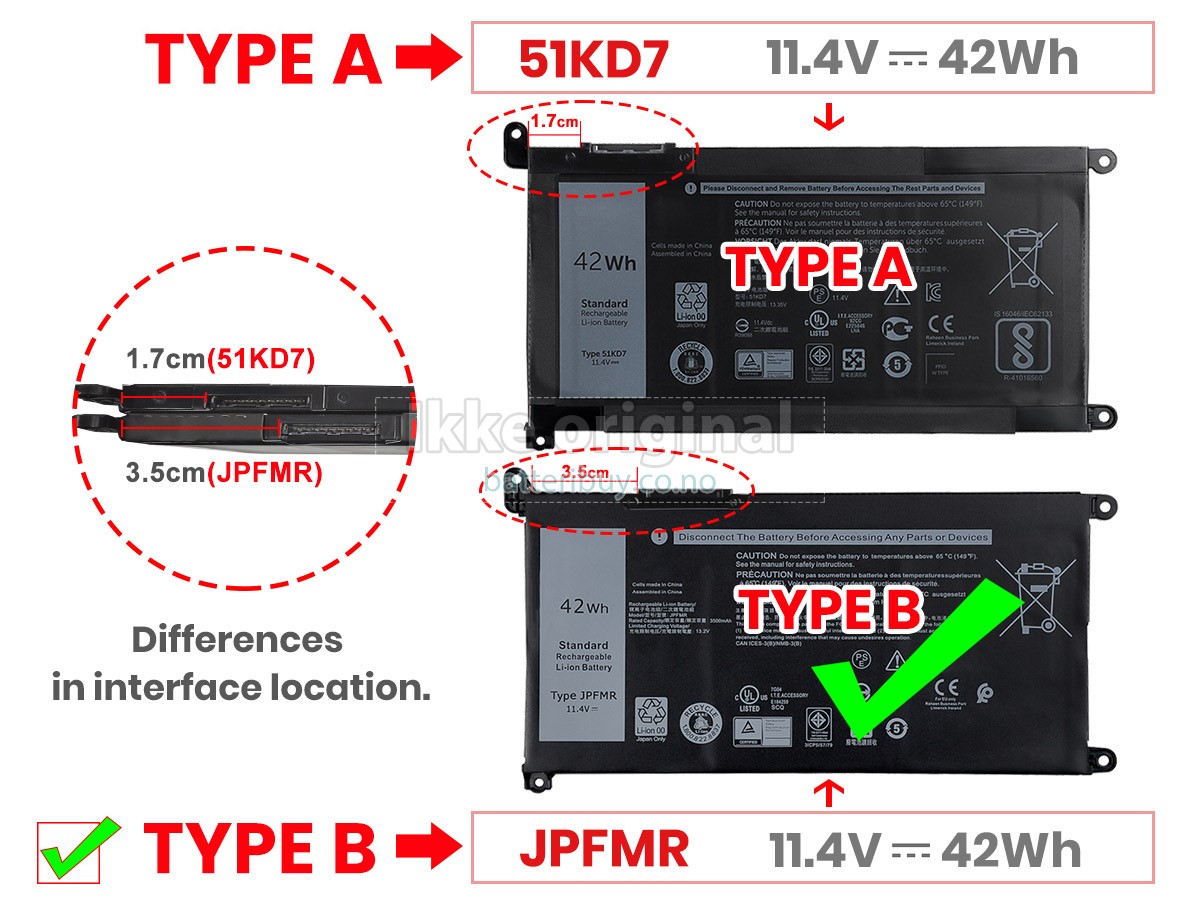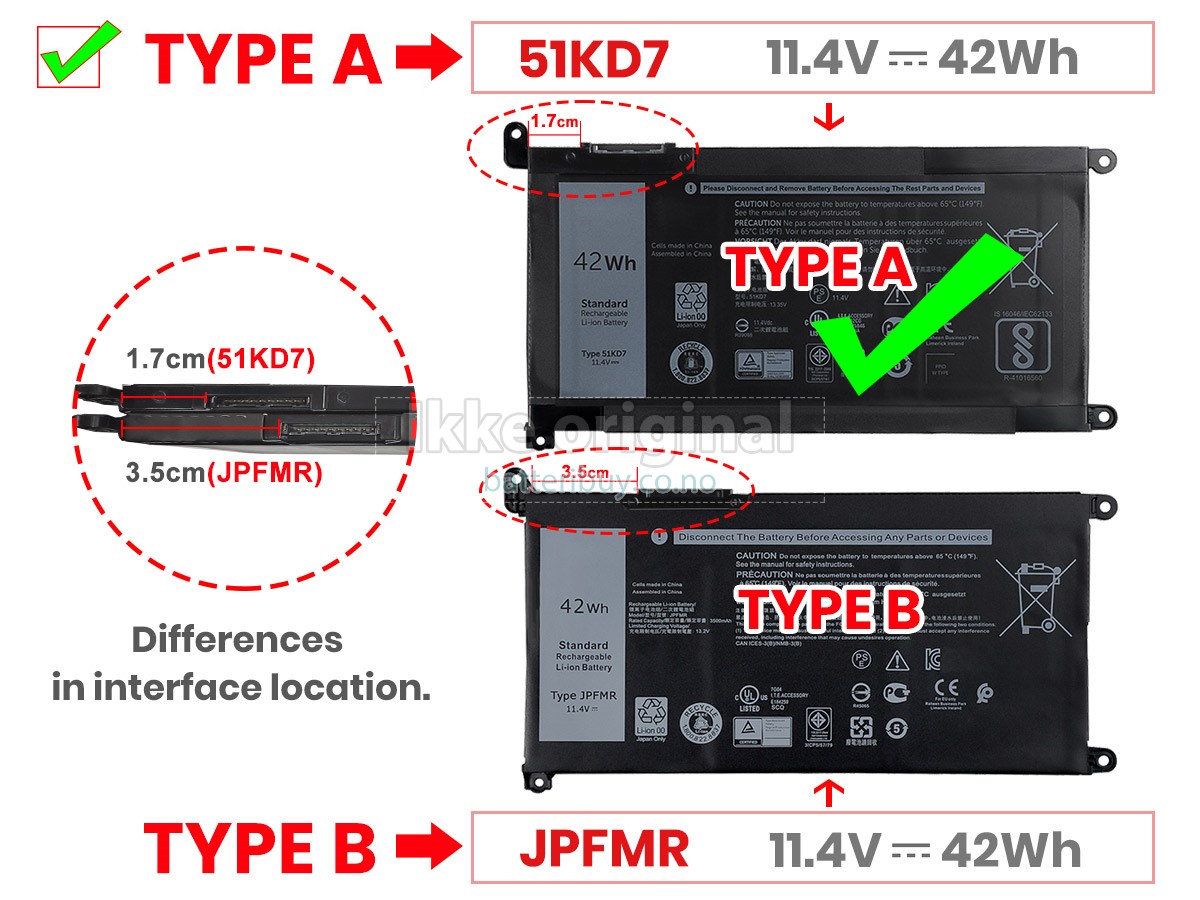 A: I produktkompatibilitetsoversikten vår, kan du sjekke om Dell Chromebook 3100 2-IN-1 batteri passer til din laptop. Ved å klikke på "større bilder", Sikre på at Dell Chromebook 3100 2-IN-1 batteri tilpasser til Dell datamaskinen. I tillegg, burde du sjekke om spenningen (verdien) er den samme som den gamle batteri din. For mer detaljer, kan du klikke på Hvordan finner jeg riktig batteri til laptopen min?