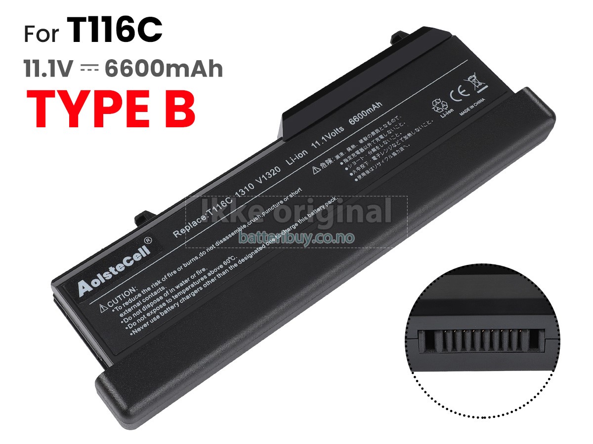 Erstatnings batteri til Dell T114C fra BatteriBuy.co.no er ditt beste valg. Vi tilbyr høykvalitets batterier til Dell T114C laptoper til en lavere pris. Våre Dell T114C batterier kan lades over minst 600 sykluser. Det er laget med et ABS plastbelegg og den originale IC beskyttelseschipen, som gir deg en ny opplevelse av utmerket varighet.
