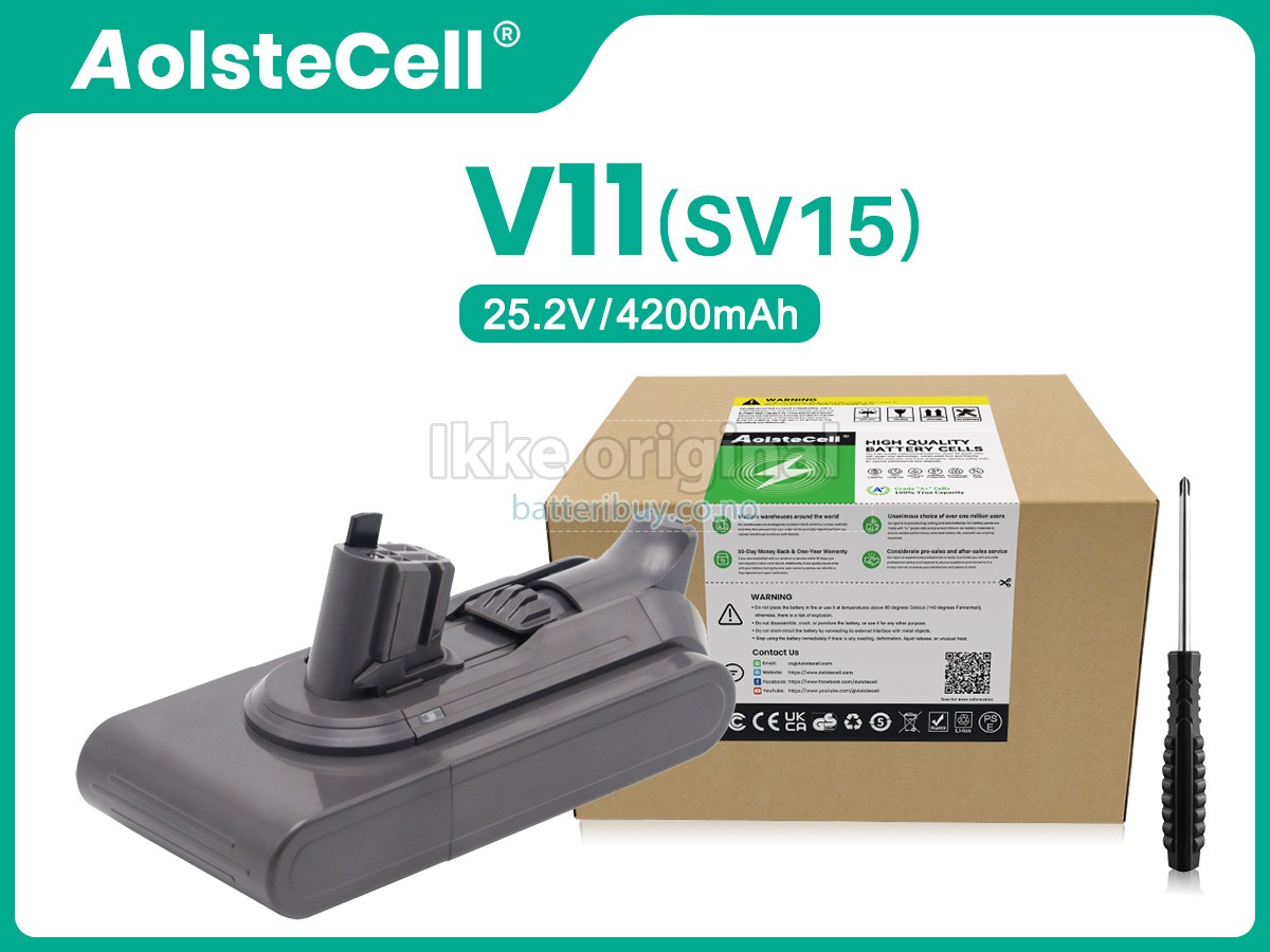 Alle våre høykvalitets erstatnings batteri til Dyson V15 DETECT TOTAL CLEAN Støvsugeren kommer med ett års garanti. Garantien gjelder om kjøperen har installert batteri riktig i enheten og har behandlet batteriet på riktig måte.