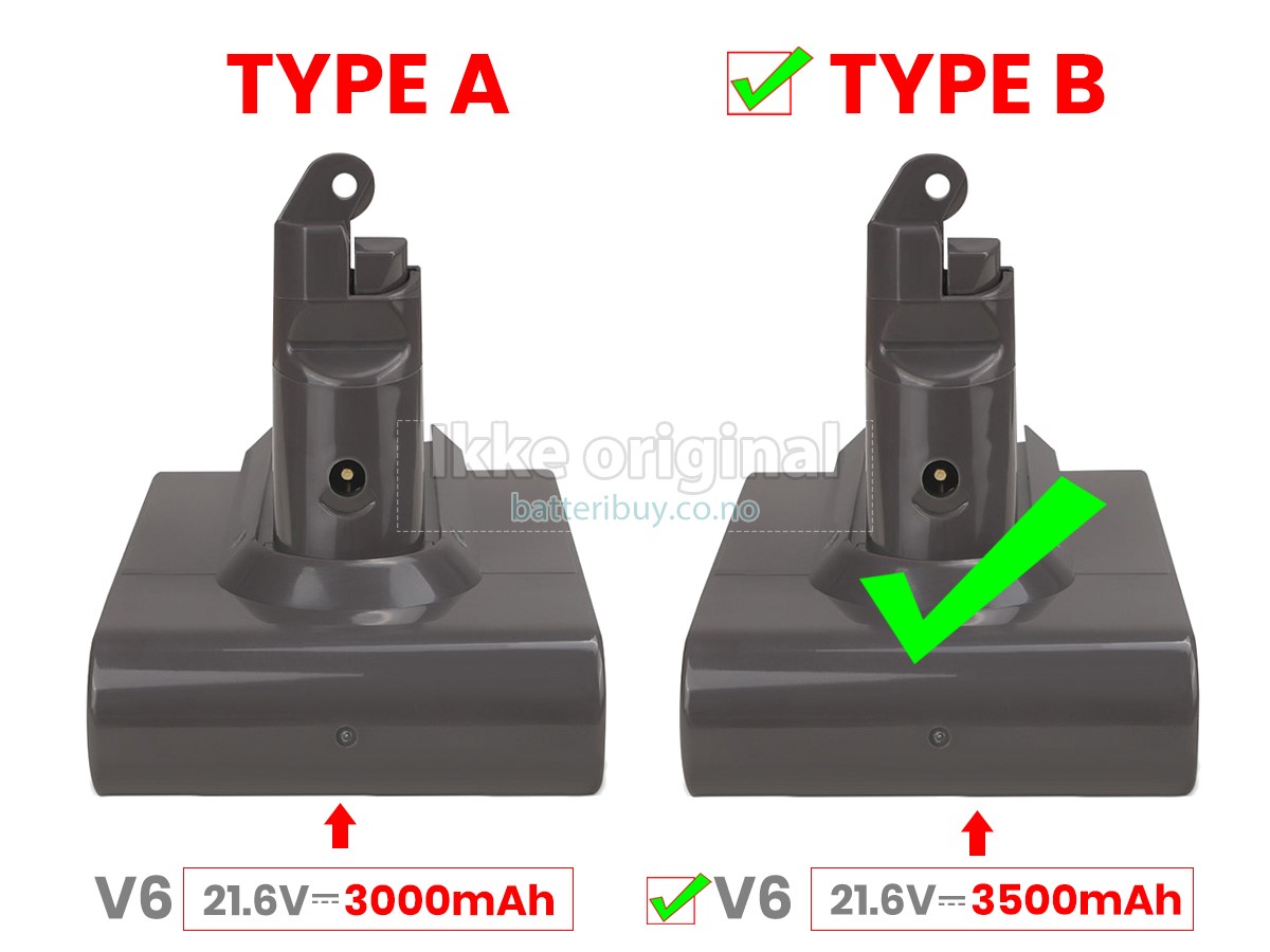 A: I produktkompatibilitetsoversikten vår, kan du sjekke om Dyson V6 ANIMAL PRO batteri passer til din støvsuger. Ved å klikke på "større bilder", Sikre på at Dyson V6 ANIMAL PRO batteri tilpasser til Dyson støvsuger. I tillegg, burde du sjekke om spenningen (verdien) er den samme som den gamle batteri din.