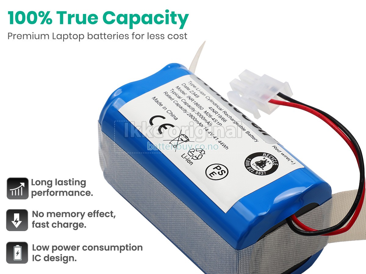 Erstatnings batteri til Ecovacs V780 fra BatteriBuy.co.no er ditt beste valg. Vi tilbyr høykvalitets batterier til Ecovacs V780 til en lavere pris. Våre Ecovacs V780 batterier kan lades over minst 600 sykluser. Det er laget med et ABS plastbelegg og den originale IC beskyttelseschipen, som gir deg en ny opplevelse av utmerket varighet.