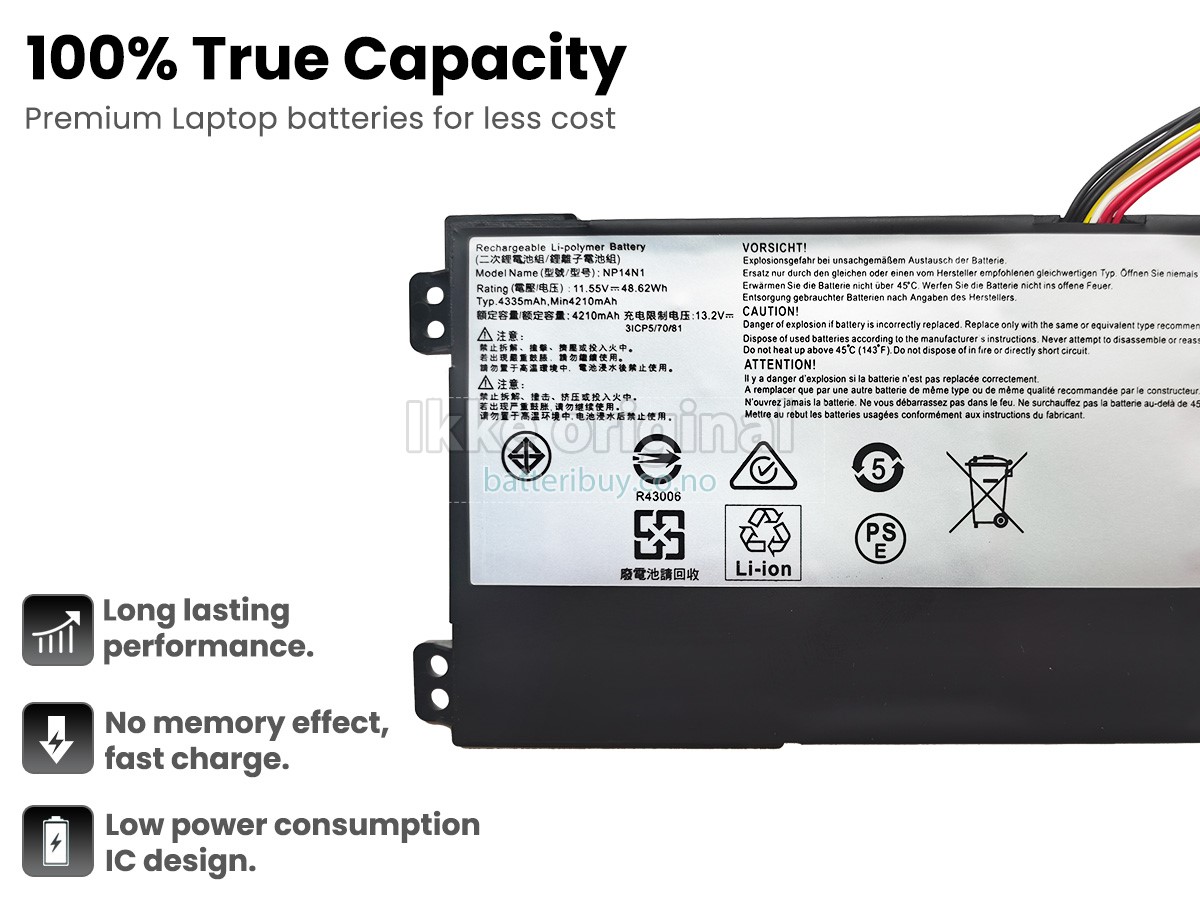 Erstatnings batteri til Getac NP14N1 fra BatteriBuy.co.no er ditt beste valg. Vi tilbyr høykvalitets batterier til Getac NP14N1 laptoper til en lavere pris. Våre Getac NP14N1 batterier kan lades over minst 600 sykluser. Det er laget med et ABS plastbelegg og den originale IC beskyttelseschipen, som gir deg en ny opplevelse av utmerket varighet.