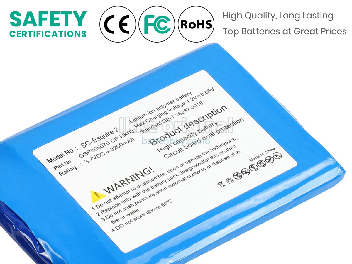 Med førsteklasses kvalitetsforsikring, batteri til Harman Kardon ESQUIRE 2 kan beskytte av spenning, kortslutning, ladetid og ESD osv. Hvert Harman Kardon ESQUIRE 2 batteri has bestått en mengde sikkerhetssertifiseringer, som CE, UL, ROHS, ISO9001/9002. Det vil bli testet grundig av teknikerne våre før det sendes til dine hender. Vi vil prøve vårt beste for å velge et høykvalitets batteri til Harman Kardon ESQUIRE 2.