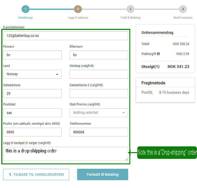 Drop-off frakt is a retail method in which merchandise is shipped to the customer directly from the warehouse or supplier rather than from the retailer. It is a business mode in which the Drop-shipping clients do not keep goods in stock, instead they transfer their customers' orders and shipment details to batteribuy.co.no. batteribuy.co.no then ships the goods directly to their customers. Drop-shipping clients make profit on the price difference during the transaction.