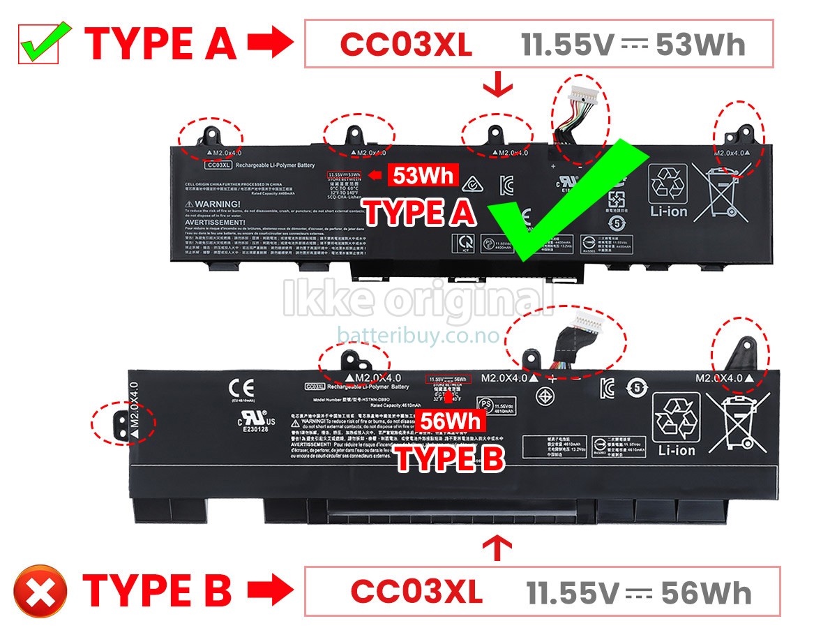 There are 2 types battery named "CC03XL", so before placing an order please open your laptop to check your old battery, ensure it is same to our product.