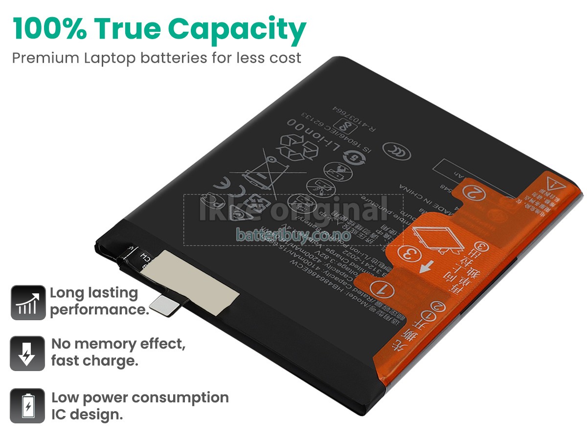 Erstatnings batteri til Huawei HB486486ECW fra BatteriBuy.co.no er ditt beste valg. Vi tilbyr høykvalitets batterier til Huawei HB486486ECW til en lavere pris. Våre Huawei HB486486ECW batterier kan lades over minst 600 sykluser. Det er laget med et ABS plastbelegg og den originale IC beskyttelseschipen, som gir deg en ny opplevelse av utmerket varighet.