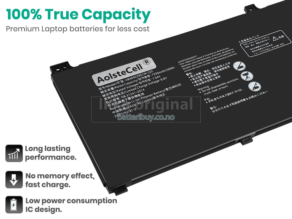 Erstatnings batteri til Huawei WFP9 fra BatteriBuy.co.no er ditt beste valg. Vi tilbyr høykvalitets batterier til Huawei WFP9 laptoper til en lavere pris. Våre Huawei WFP9 batterier kan lades over minst 600 sykluser. Det er laget med et ABS plastbelegg og den originale IC beskyttelseschipen, som gir deg en ny opplevelse av utmerket varighet.