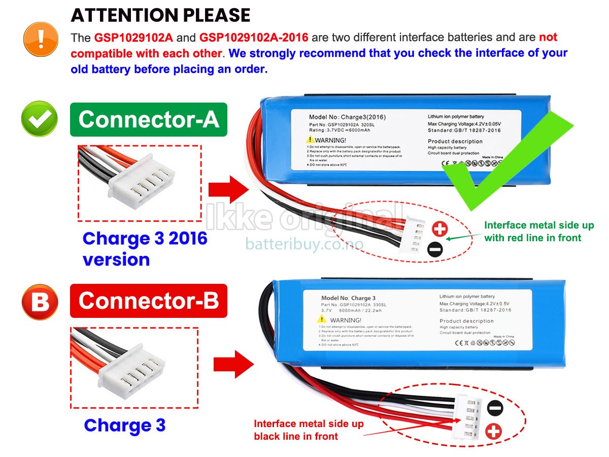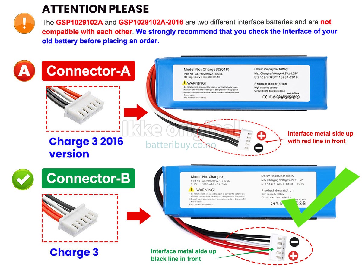 A: I produktkompatibilitetsoversikten vår, kan du sjekke om JBL GSP1029102A-2016 batteri passer til din. Ved å klikke på "større bilder", Sikre på at JBL GSP1029102A-2016 batteri tilpasser til JBL. I tillegg, burde du sjekke om spenningen (verdien) er den samme som den gamle batteri din.