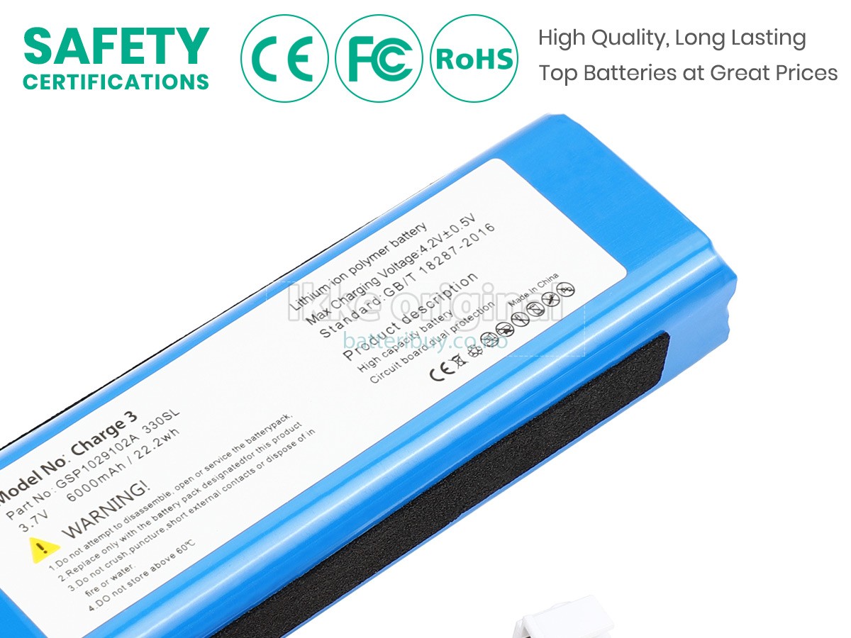 Erstatnings batteri til JBL GSP1029102A-2016 fra BatteriBuy.co.no er ditt beste valg. Vi tilbyr høykvalitets batterier til JBL GSP1029102A-2016 til en lavere pris. Våre JBL GSP1029102A-2016 batterier kan lades over minst 600 sykluser. Det er laget med et ABS plastbelegg og den originale IC beskyttelseschipen, som gir deg en ny opplevelse av utmerket varighet.