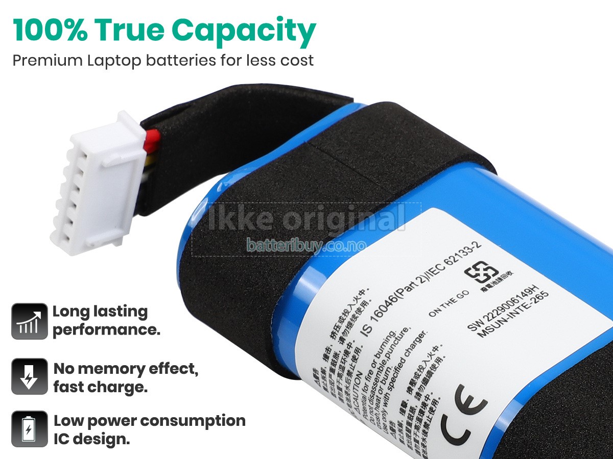 Erstatnings batteri til JBL SUN-INTE-265Z fra BatteriBuy.co.no er ditt beste valg. Vi tilbyr høykvalitets batterier til JBL SUN-INTE-265Z til en lavere pris. Våre JBL SUN-INTE-265Z batterier kan lades over minst 600 sykluser. Det er laget med et ABS plastbelegg og den originale IC beskyttelseschipen, som gir deg en ny opplevelse av utmerket varighet.