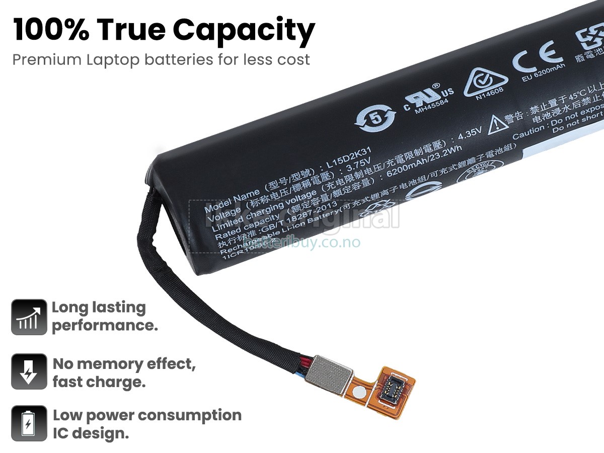 Erstatnings batteri til Lenovo L15D2K31 fra BatteriBuy.co.no er ditt beste valg. Vi tilbyr høykvalitets batterier til Lenovo L15D2K31 laptoper til en lavere pris. Våre Lenovo L15D2K31 batterier kan lades over minst 600 sykluser. Det er laget med et ABS plastbelegg og den originale IC beskyttelseschipen, som gir deg en ny opplevelse av utmerket varighet.