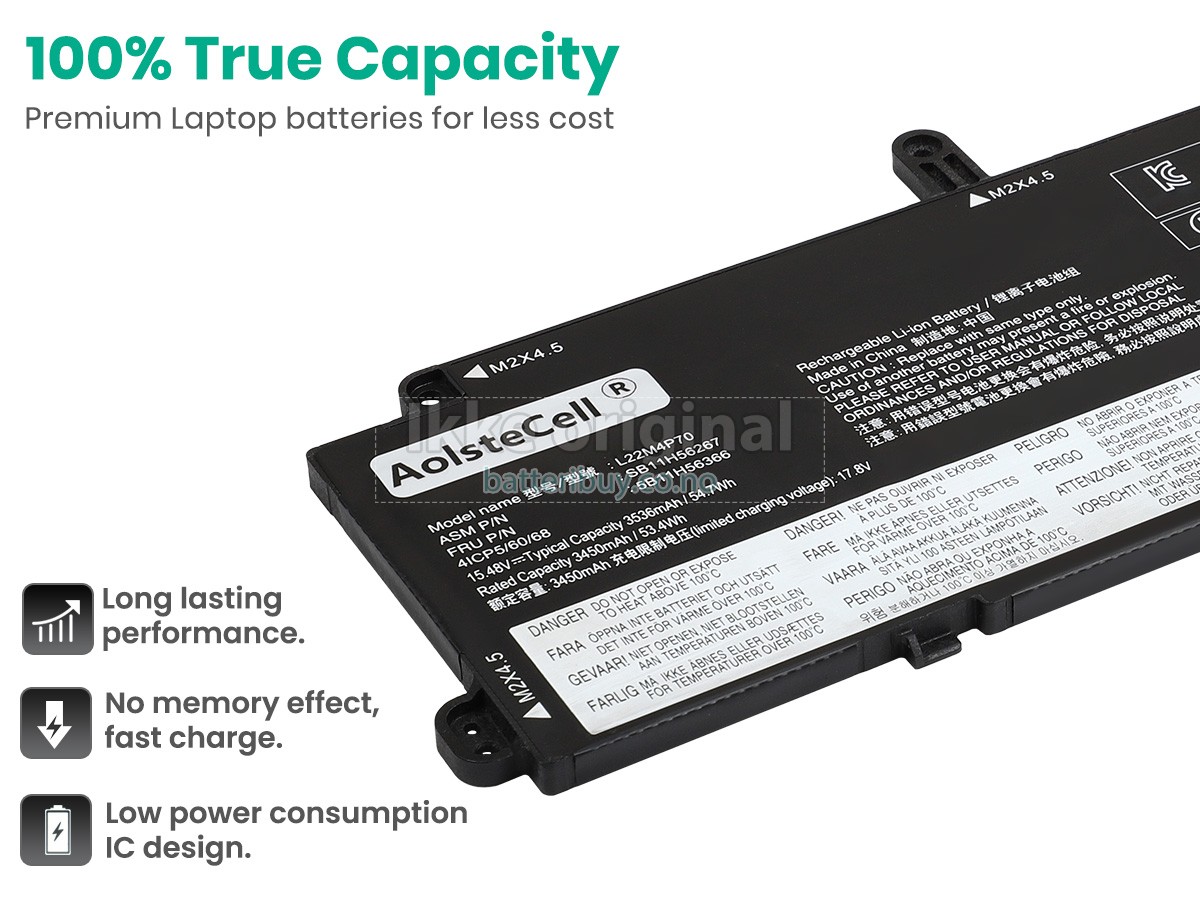 Erstatnings batteri til Lenovo L22D4P70 fra BatteriBuy.co.no er ditt beste valg. Vi tilbyr høykvalitets batterier til Lenovo L22D4P70 laptoper til en lavere pris. Våre Lenovo L22D4P70 batterier kan lades over minst 600 sykluser. Det er laget med et ABS plastbelegg og den originale IC beskyttelseschipen, som gir deg en ny opplevelse av utmerket varighet.