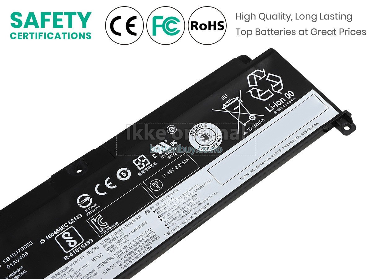 Med førsteklasses kvalitetsforsikring, batteri til Lenovo SB10J79003 kan beskytte av spenning, kortslutning, ladetid og ESD osv. Hvert Lenovo SB10J79003 laptop batteri has bestått en mengde sikkerhetssertifiseringer, som CE, UL, ROHS, ISO9001/9002. Det vil bli testet grundig av teknikerne våre før det sendes til dine hender. Vi vil prøve vårt beste for å velge et høykvalitets batteri til Lenovo SB10J79003 laptop.