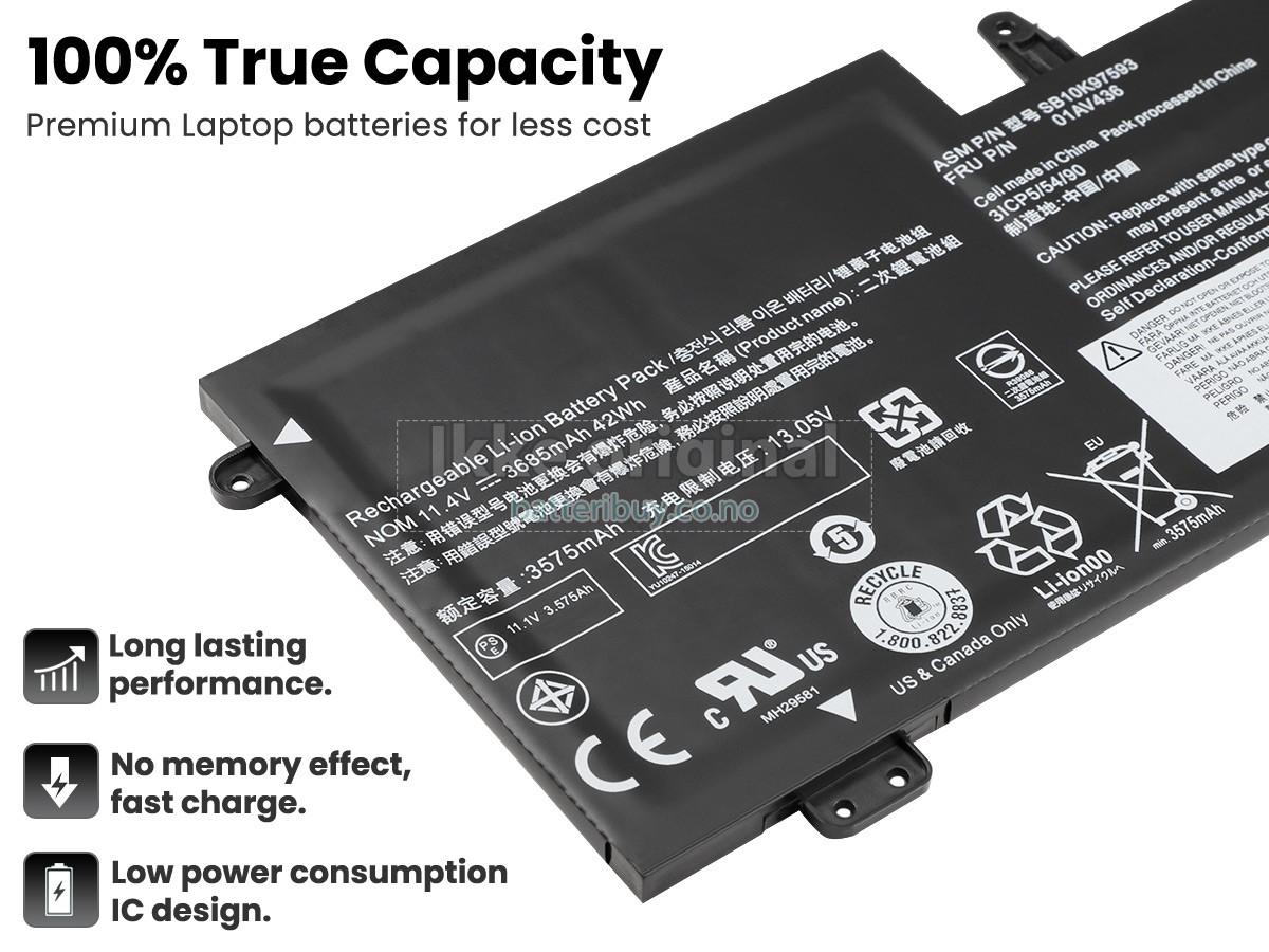 Erstatnings batteri til Lenovo ThinkPad NEW S2 2018-20L1A00JCD fra BatteriBuy.co.no er ditt beste valg. Vi tilbyr høykvalitets batterier til Lenovo ThinkPad NEW S2 2018-20L1A00JCD laptoper til en lavere pris. Våre Lenovo ThinkPad NEW S2 2018-20L1A00JCD batterier kan lades over minst 600 sykluser. Det er laget med et ABS plastbelegg og den originale IC beskyttelseschipen, som gir deg en ny opplevelse av utmerket varighet.