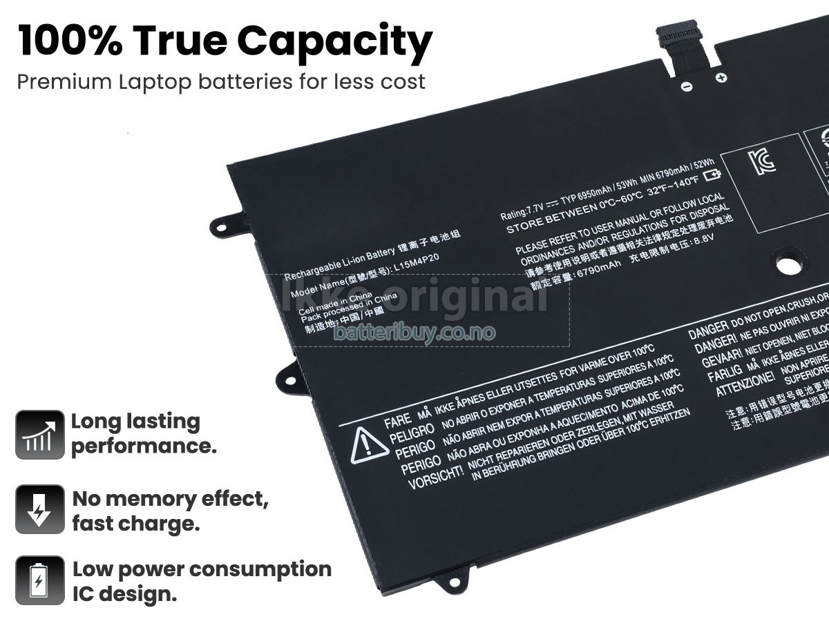 Alle våre høykvalitets erstatnings batteri til Lenovo YOGA 900S-12ISK-80ML laptopen kommer med ett års garanti. Garantien gjelder om kjøperen har installert batteri riktig i enheten og har behandlet batteriet på riktig måte.
