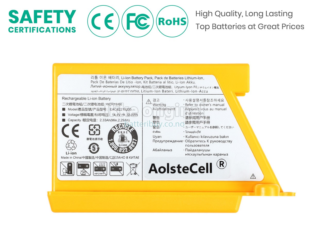 Alle våre høykvalitets erstatnings batteri til LG R76CIM Støvsugeren kommer med ett års garanti. Garantien gjelder om kjøperen har installert batteri riktig i enheten og har behandlet batteriet på riktig måte.