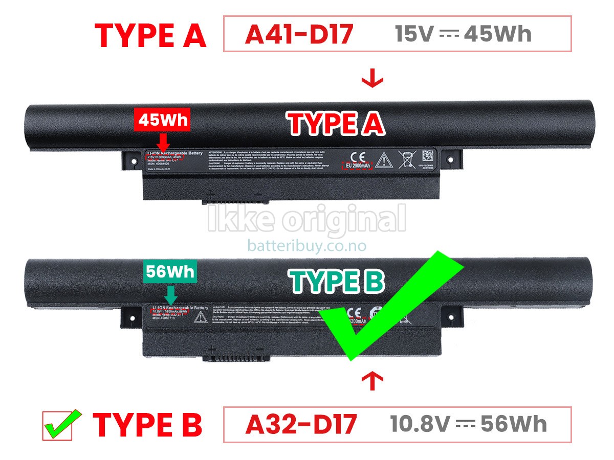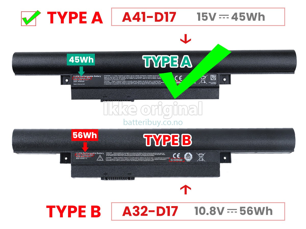 Erstatnings batteri til Medion A41-D17 fra BatteriBuy.co.no er ditt beste valg. Vi tilbyr høykvalitets batterier til Medion A41-D17 laptoper til en lavere pris. Våre Medion A41-D17 batterier kan lades over minst 600 sykluser. Det er laget med et ABS plastbelegg og den originale IC beskyttelseschipen, som gir deg en ny opplevelse av utmerket varighet.